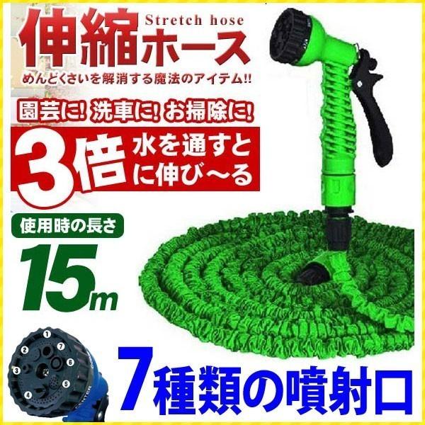 伸びるホース 15m 7種類ノズル 便利 伸縮 蛇口 ホース ガーデニング 水道 収納 庭 洗車 水圧 高圧 散水 軽量 伸縮ホース 散水ホース 02 Attention 通販 Yahoo ショッピング