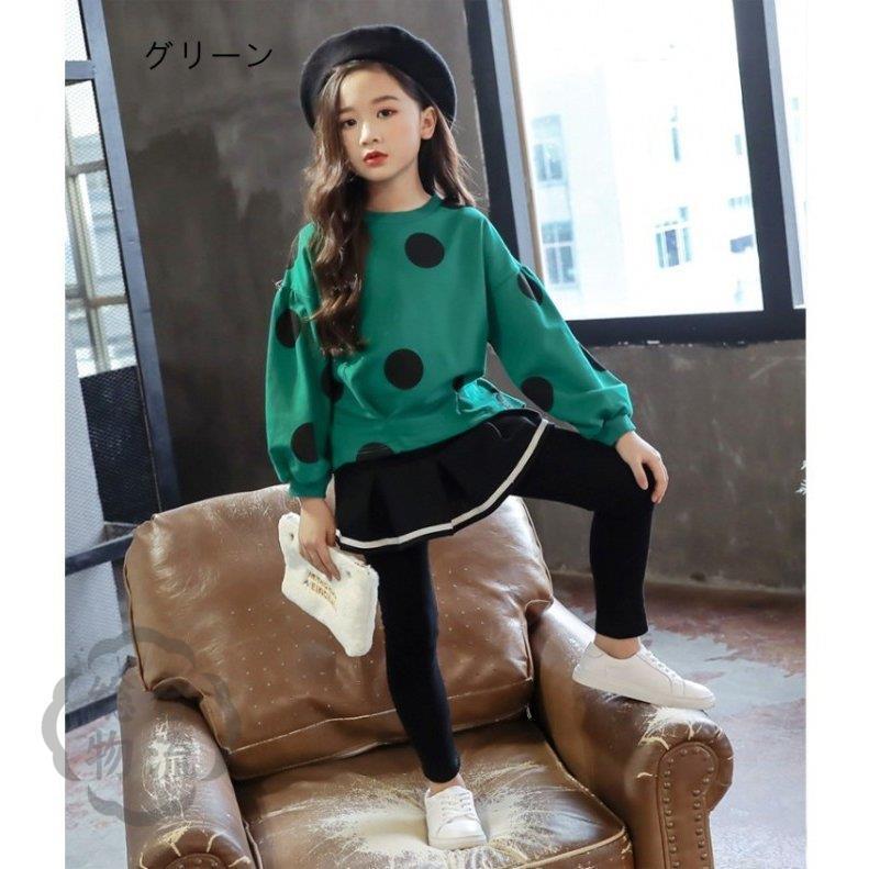 大人も着やすいシンプルファッション 韓国子供服 女の子 2点セット 子供 トップス 水玉柄 パーカー スウェット 長袖 ボトムス キュロットスカート 女の子 キッズ 上下セットアップ 春秋 通園 通学 パンツ サイズ 110